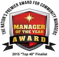 Albert Management employee and on-site General Manager at Monterey Country Club Association, Dana Brown, has been named as a Top 20 finalist in the Manager of the Year contest. Touted as the 'Nation's Premier Award for Community Managers' Dana is being recognized as among the very best on-site community managers in the country. The final winner of the coveted award will be announced at the CAI National Conference in Las Vegas on April 29, 2015. To learn more about the Manager of the Year Award and contest visit www.manageroftheyear.org. Congratulations Dana!
